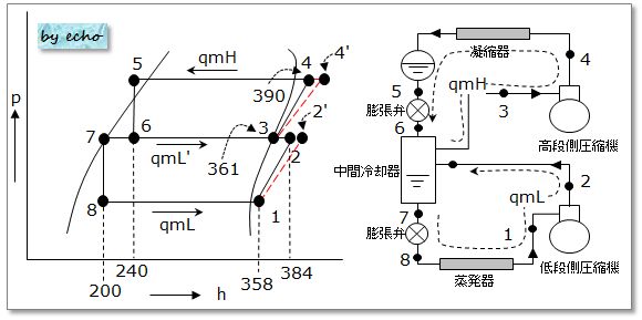 中間冷却器の熱収支を導き出し方をマスターしていても、「中間冷却器の必要冷凍能力Φm」で戸惑ってしまうかもしれません。