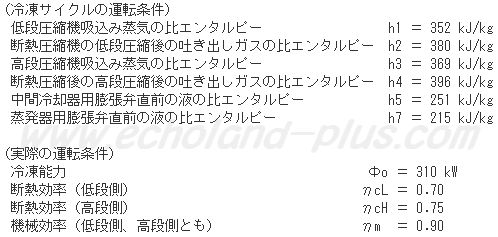 (1)実際の中間冷却器へのバイパス冷媒循環量 q´mroと低段側の冷媒循環量qmroとの比 q´mroとの比 (q´mro / qmro)を求めよ。