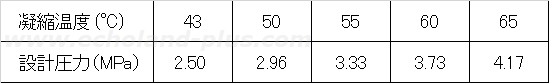 ただし、R 410A の各基準凝縮温度における設計圧力は、次表の圧力を使用するものとする。