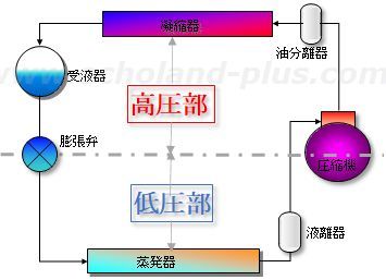 まずは、図を見て【コラム】を読んで、「冷媒配管」の高圧側と低圧側のイメージを作り上げましょう。