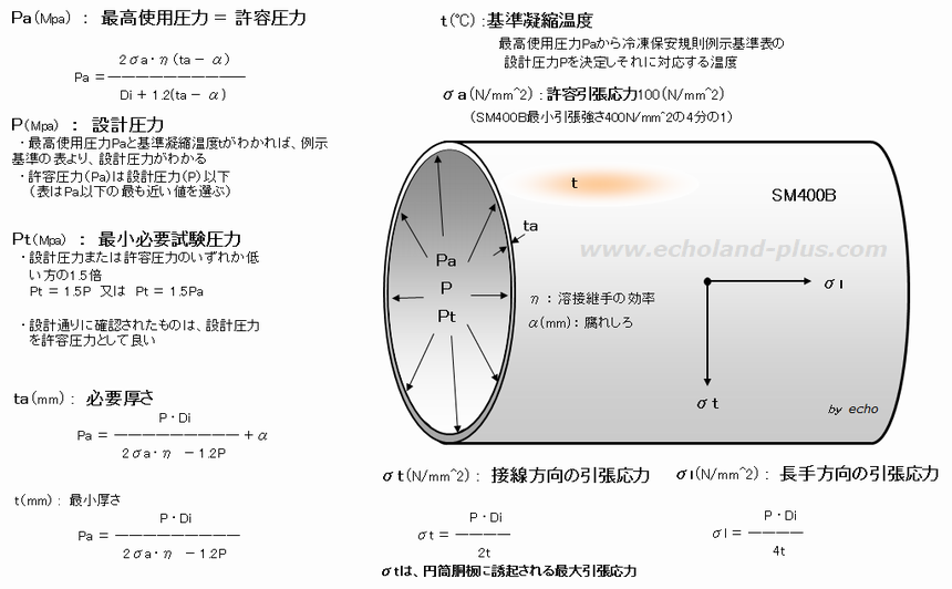 ・円筒胴圧力容器に内圧が作用したときに発生する最大引張応力は、円筒胴の接線方向の引張応力であり、この引張応力は長手方向の引張応力の2倍である。 H29学/10 R01学/10 R05学/10