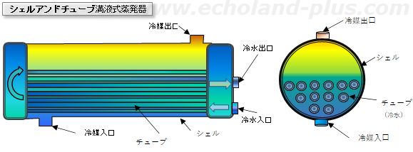・シェルアンドチューブ形は、乾式蒸発器と満液式蒸発器に使用されている。 by echo